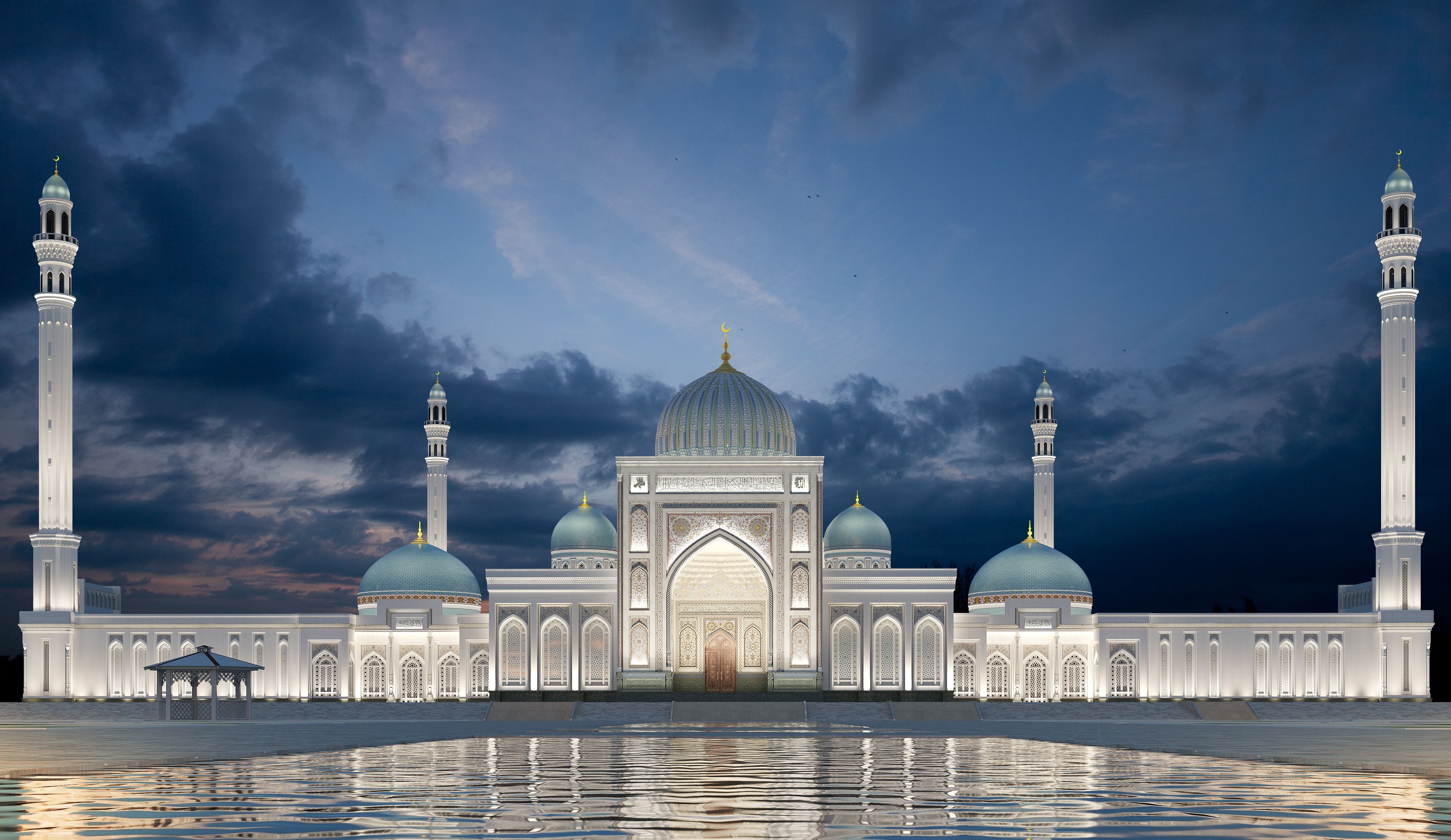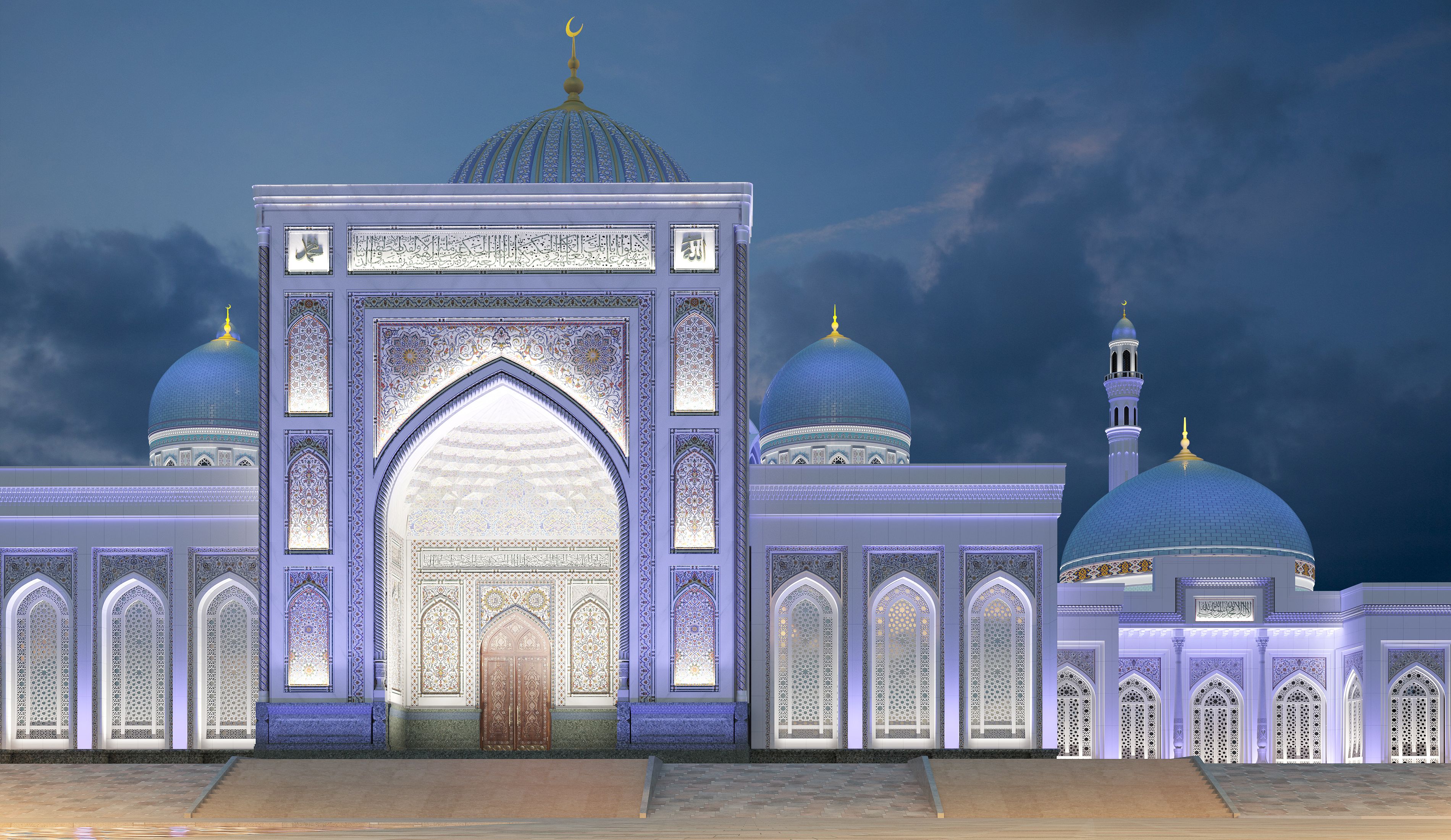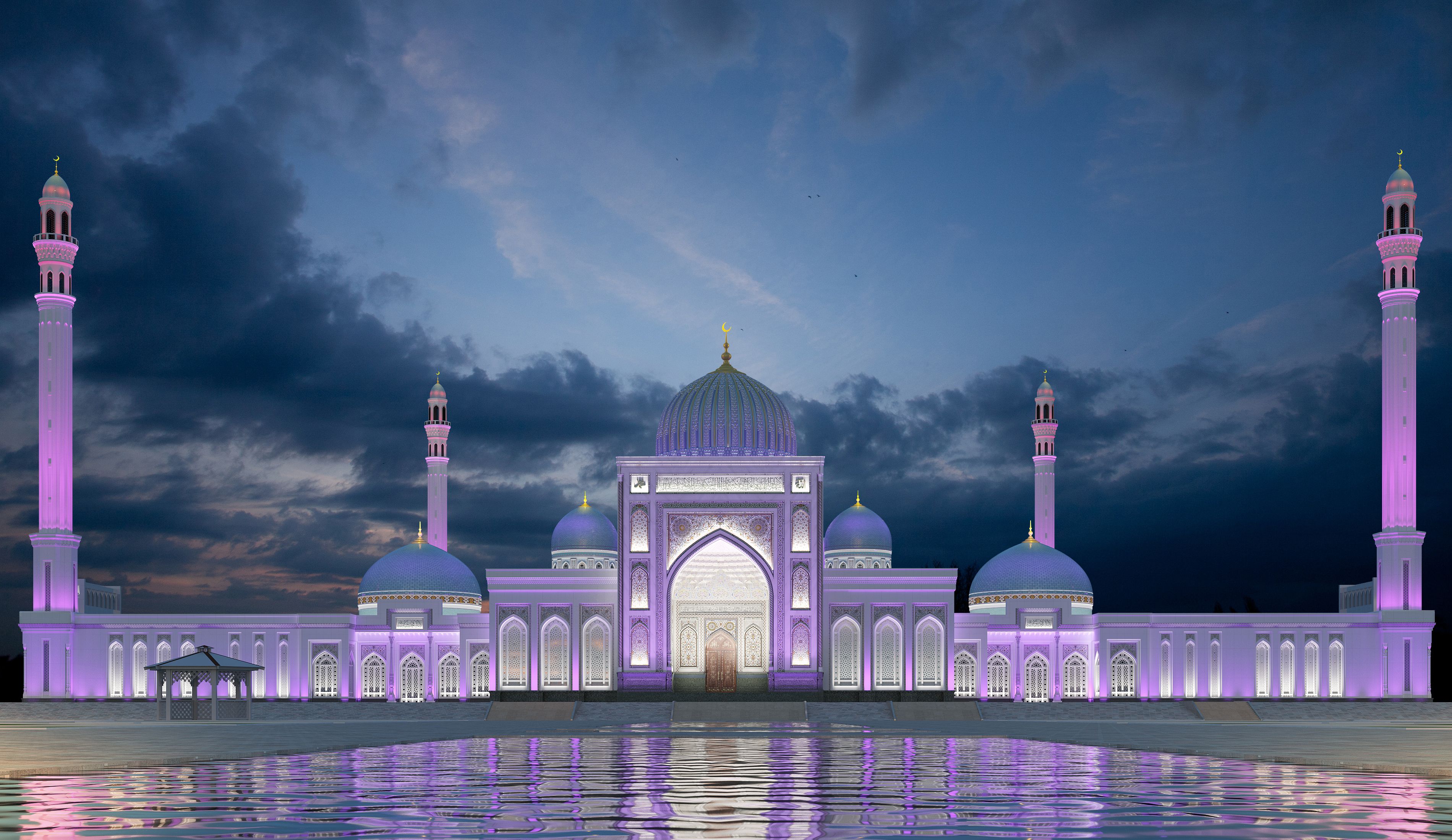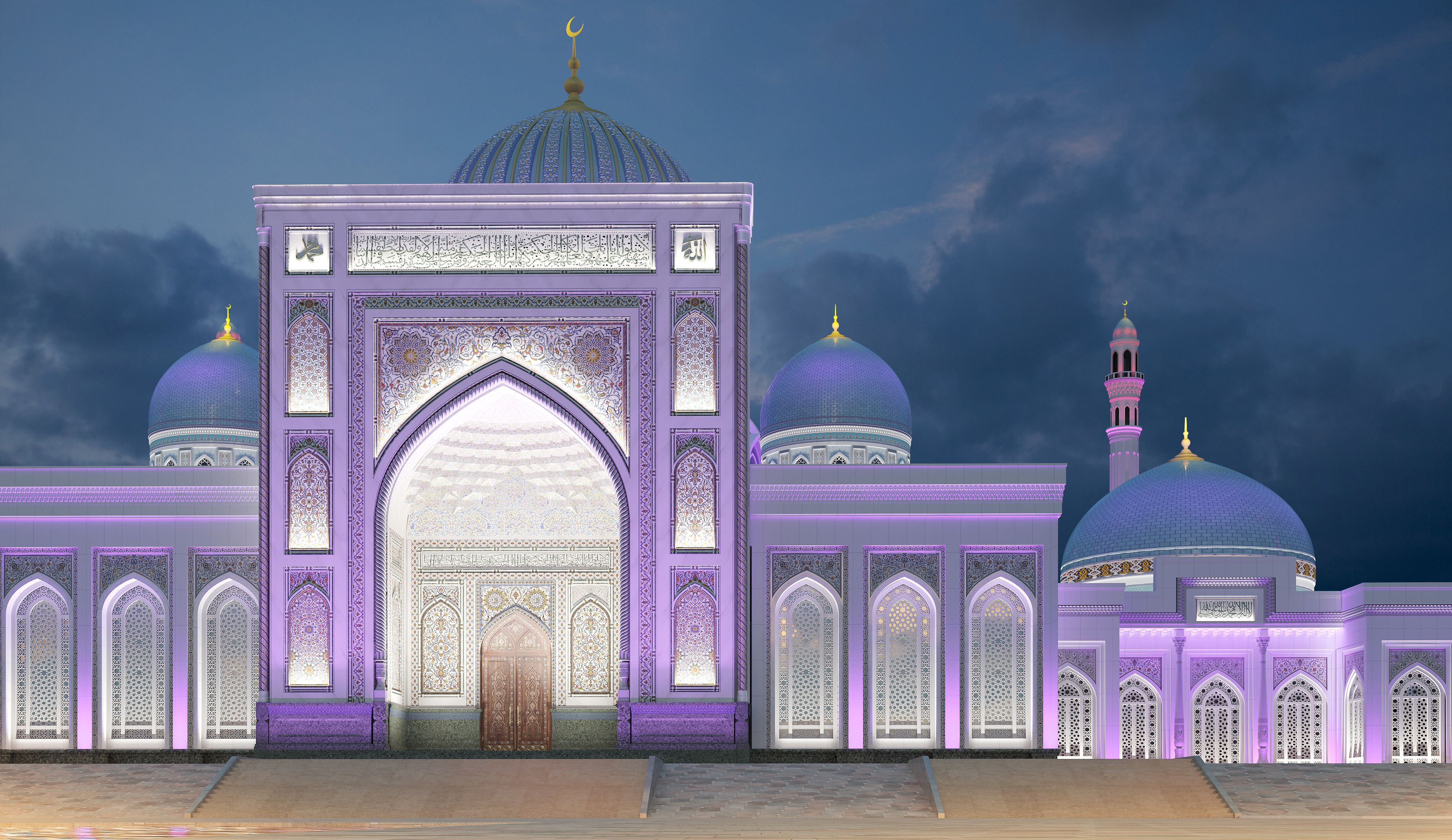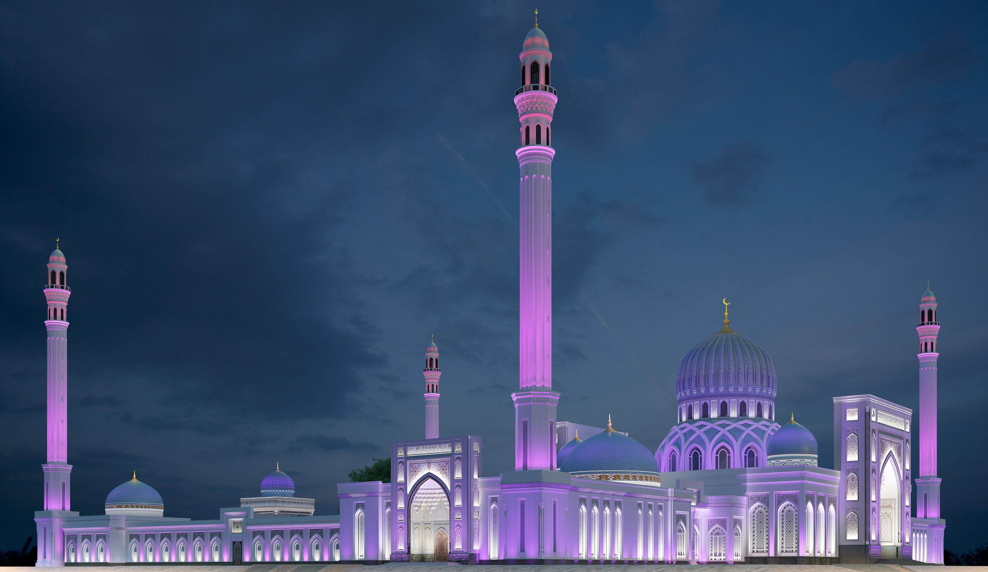В связи с чем разработан строгий и в тоже время легкий ночной образ комплекса как целостного светового ансамбля для выявления эффектных светопанорамных видов.